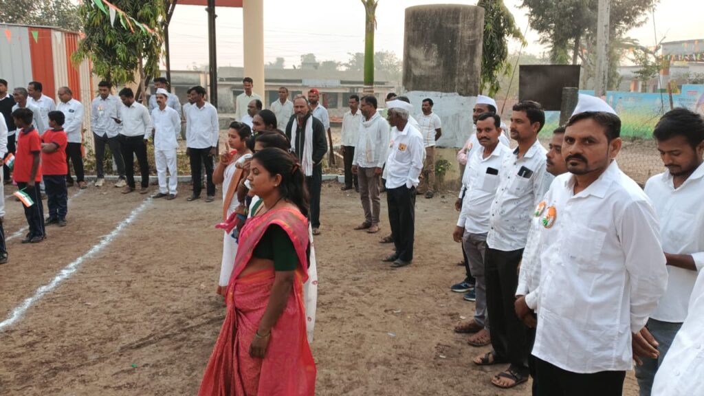 प्रजासत्ताक दिनानिमित्त शाळेच्या वतीने प्रभातफेरीचे आयोजन करण्यात आले. यावेळी हनुमान मंदिर येथे पोलीस पाटील प्रदीप बलकी, ग्रामपंचायत कार्यालयात सरपंच प्रियांकाताई कोल्हे तसेच जिल्हा परिषद शाळेत शाळा व्यवस्थापन समितीचे अध्यक्ष रामचंद्र देरकर यांच्या हस्ते ध्वजारोहण करण्यात आले.