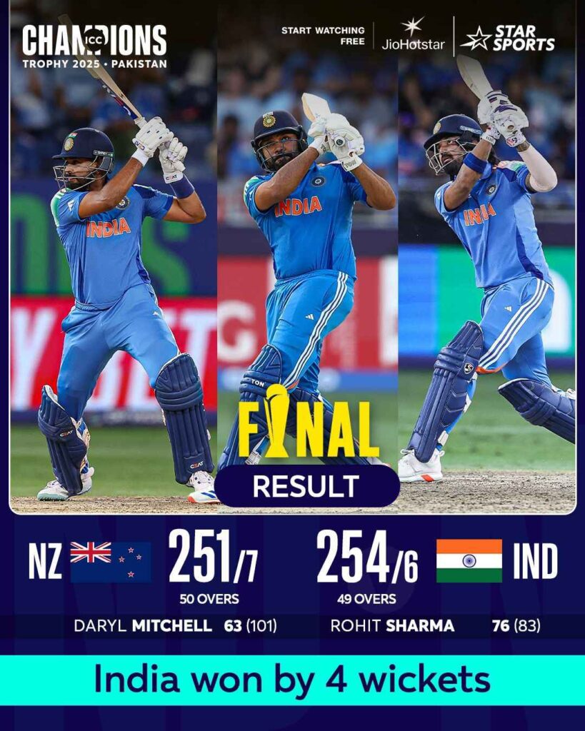INDIA WINS ICC CHAMPIONS TROPHY 2025