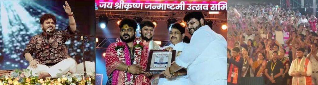 वणी (प्रतिनिधी) – श्रीकृष्ण जन्माष्टमीनिमित्त ॲड. कुणाल विजय चोरडिया यांच्या अध्यक्षतेखाली १५ ऑगस्ट रोजी शासकीय मैदानावर सुप्रसिद्ध गायक व इंडियन आयडॉल विजेता हेमंत बृजवासी यांच्या भजन संध्याचे आयोजन करण्यात आले.