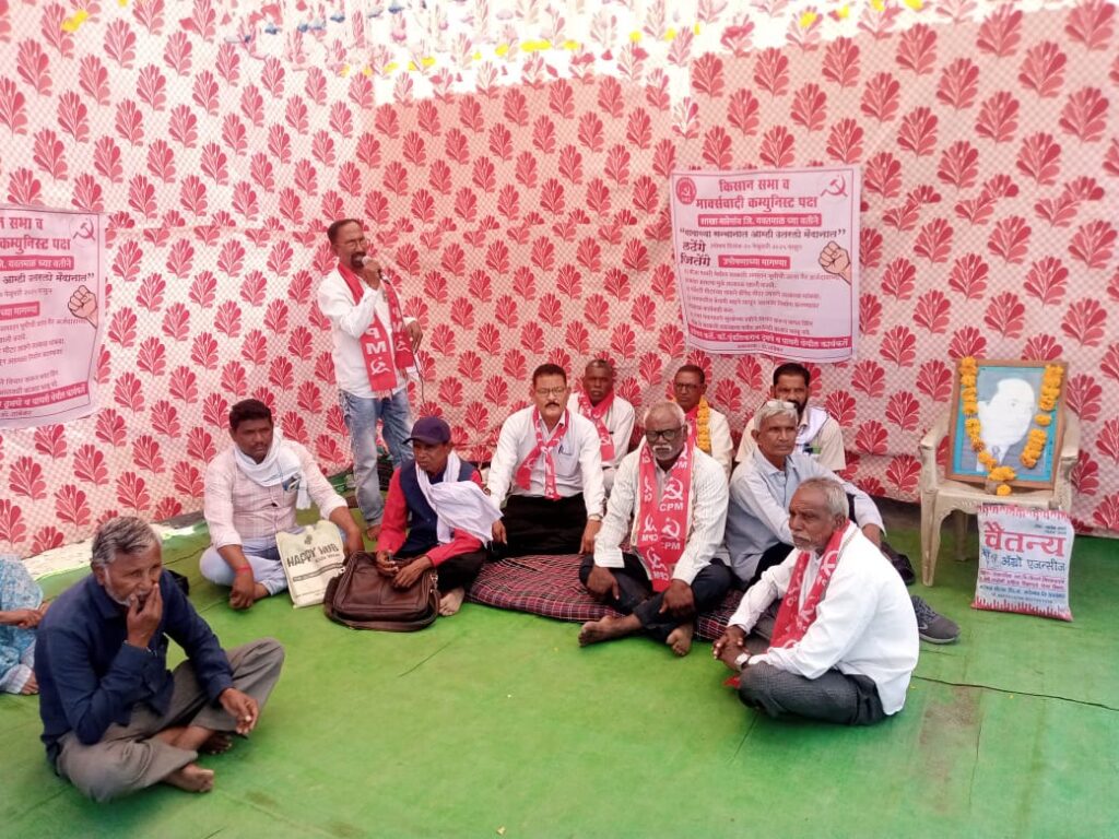 गावाचा सन्मानात, आम्ही उतरलो मैदानात, म्हणत लढेंगे तो जितेंगे हा नारा देत आमरण उपोषण सुरू करताना मार्क्सवादी कम्युनिस्ट पक्षाचे जिल्हा सचिव कॉ. ॲड. कुमार मोहरमपुरी, तालुका सचिव कॉ. रामभाऊ जिद्देवार, डॉ. श्रीकांत तांबेकर, सुदर्शन टेकाम आदि उपस्थित होते.