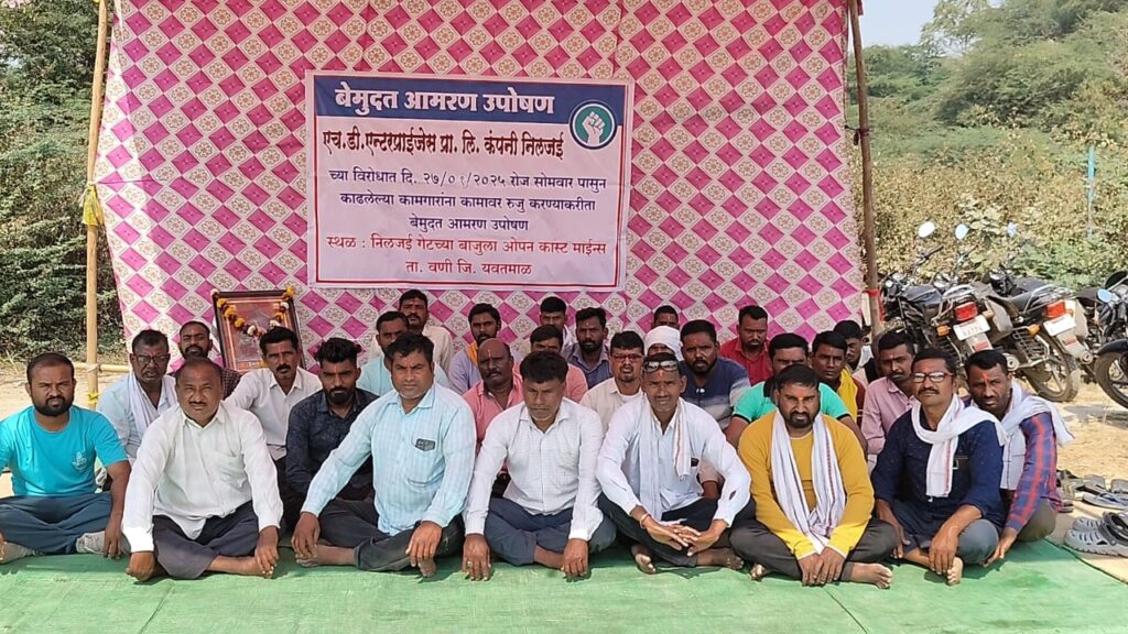 एचडी एन्टरप्राईजेस व गौरव जॉइंट वेंचर प्रा. लि. ही कंपनी निलजई ओपनकास्ट खाणीसाठी ओ.बी. उत्खननाचे काम करते. गेल्या 5 वर्षांपासून या कंपनीचे काम सुरु आहे. या कामासाठी एचडी एन्टरप्राईजेस या कंपनीचे 35 डंपर व गौरव जॉइंट वेंचर या कंपनीचे 60 डंपर सुरु आहेत. सध्या ही कंपनी पूर्ण क्षमतेने काम करीत आहे. मात्र असे असूनही या कंपनीत काम करणा-या 65 कामगारांना नोकरीवरून कमी करण्यात आले आहे. त्यामुळे कामगारांवर उपासमारीची पाळी आली आहे. या विरोधात कामगारांनी आमरण उपोषणाला सुरुवात केली आहे.